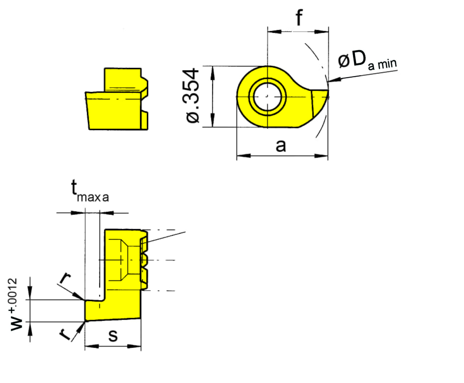 Cutting insert height, Cutting insert thickness (s)
